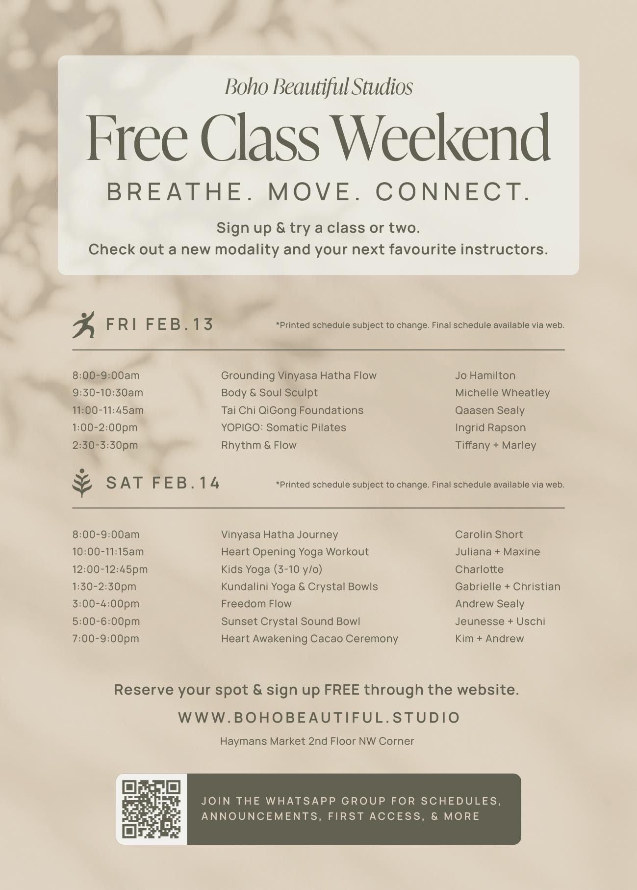 *Schedule subject to change. Final schedule available via BOHO Beautiful website