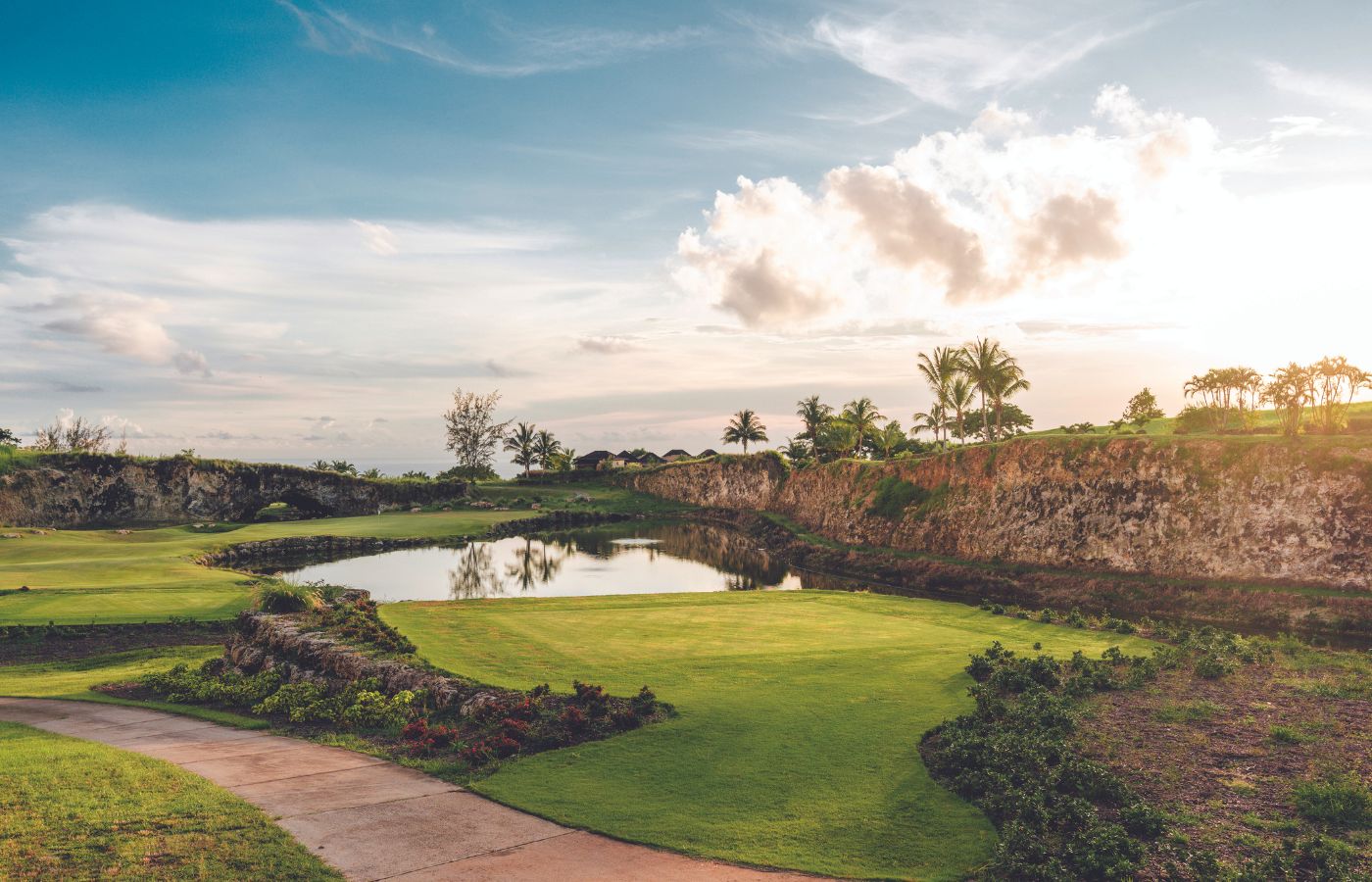 Fairways wind their way through 200ft deep gullies or perch high up on ridges overlooking superb vistas - while surrounded by rich tropical vegetation, rare flora and fauna, fruit trees and spectacular coral formations – this exceptional golf course is ideally positioned within an enchanting natural wonderland.